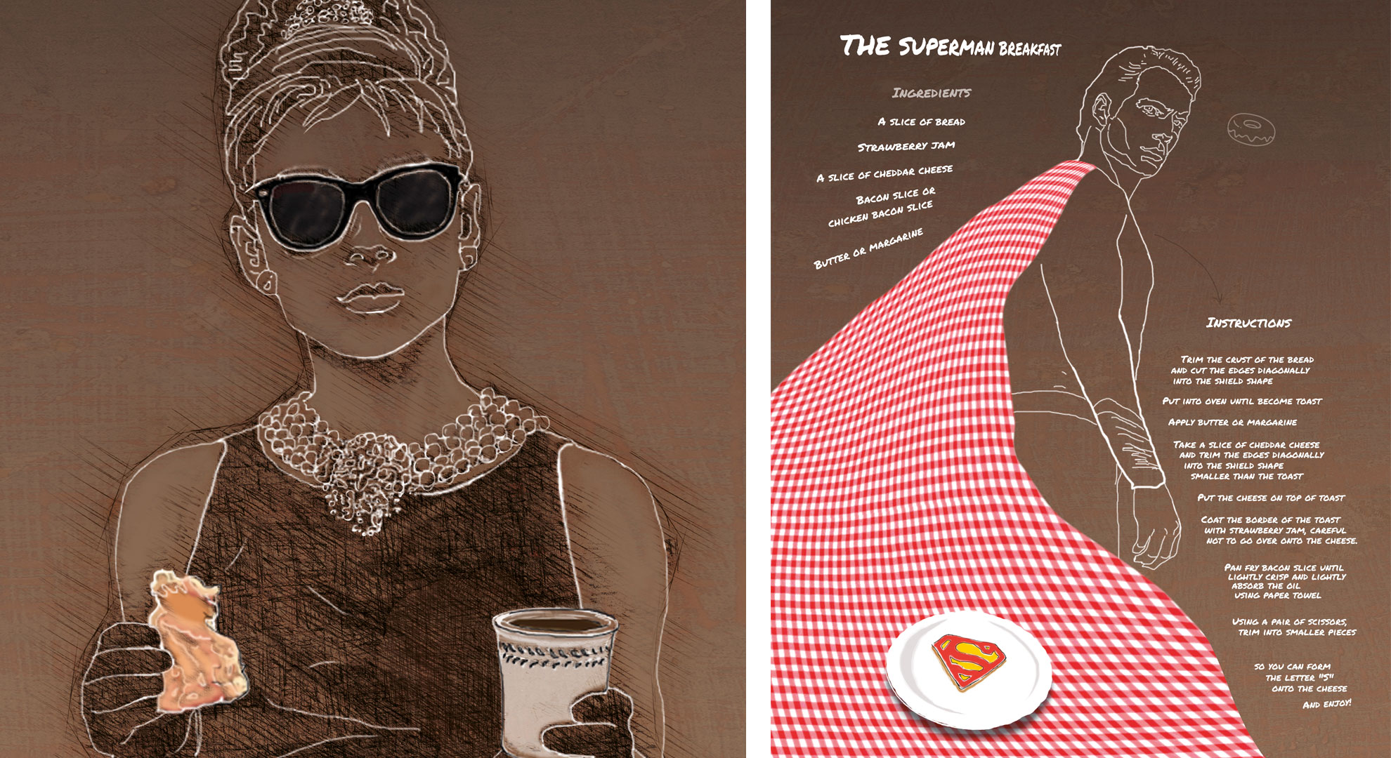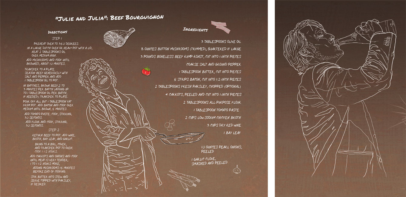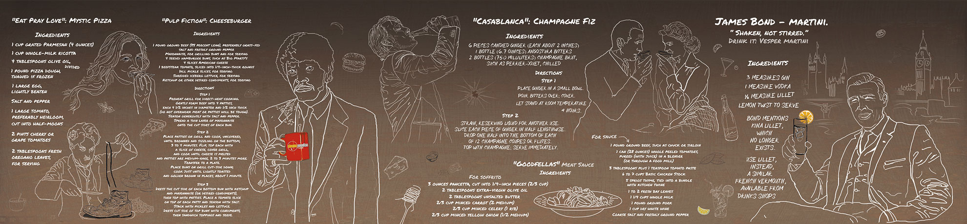 Creating a backsplash design for the kitchen and bar entails incorporating characters and distinct food and cocktail recipes from renowned films. Considering the Cinema Paradiso company’s affiliation with cinematic art, the design concept logically necessitated a visual representation that harmonizes with this theme. The kitchen backsplash dimensions encompass 204 x 50 cm for the main section, while the side section measures 65 x 50 cm.